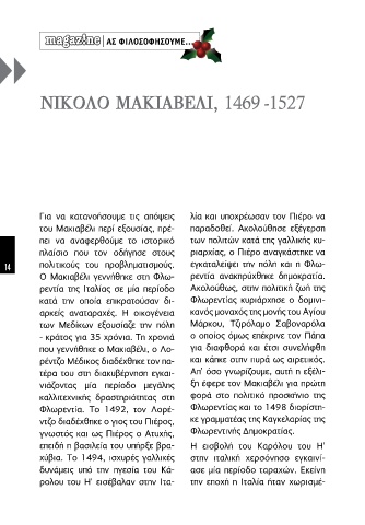 νιάζοντας μία περίοδο μεγάλης ξη έφερε τον Μακιαβέλι για πρώτη