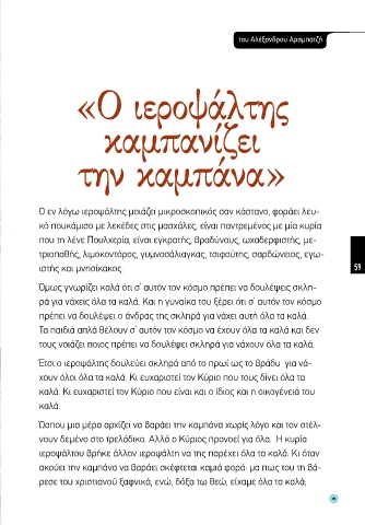 Ώσπου μια μέρα αρχίζει να βαράει την καμπάνα χωρίς λόγο και τον στέλ-