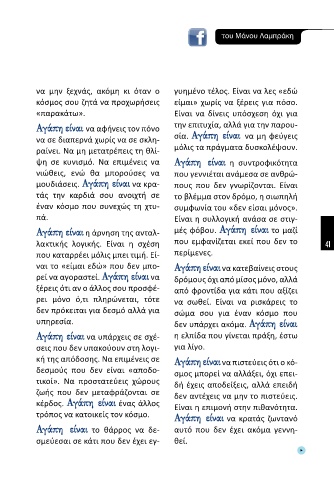 να σε διαπερνά χωρίς να σε σκλη- σία. Αγάπη είναι να μη φεύγεις