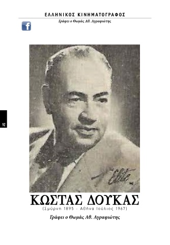 ΕΛΛΗΝΙΚΟΣ ΚΙΝΗΜΑΤΟΓΡΑΦΟΣ Γράφει ο Θωμάς Αθ. Αγραφιώτης 92 ΚΩΣΤΆΣ ΔΟΥΚΆΣ ( Σ μ ύ ρ ν η 18 9 5 - Α θ ή ν α Ι ο ύ λ ι ο ς 19 67 ) Γράφει ο Θωμάς Αθ. Αγραφιώτης